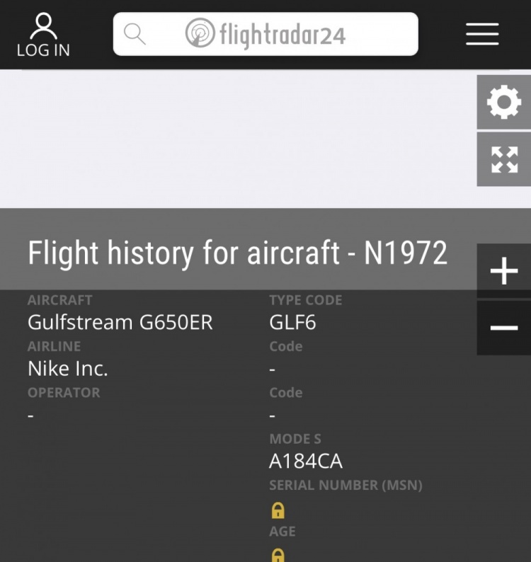 经Flightradar24航班信息平台查询,该架湾流G650ER型公务机为耐克公司旗下资产,而起飞地波特兰恰为耐克全球总部所在地。
