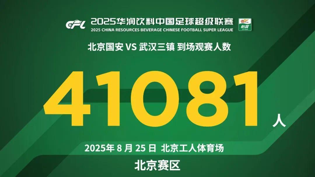 8月25日,在2025华润饮料中超联赛第22轮比赛中,北京国安主场4-0战胜武汉三镇。